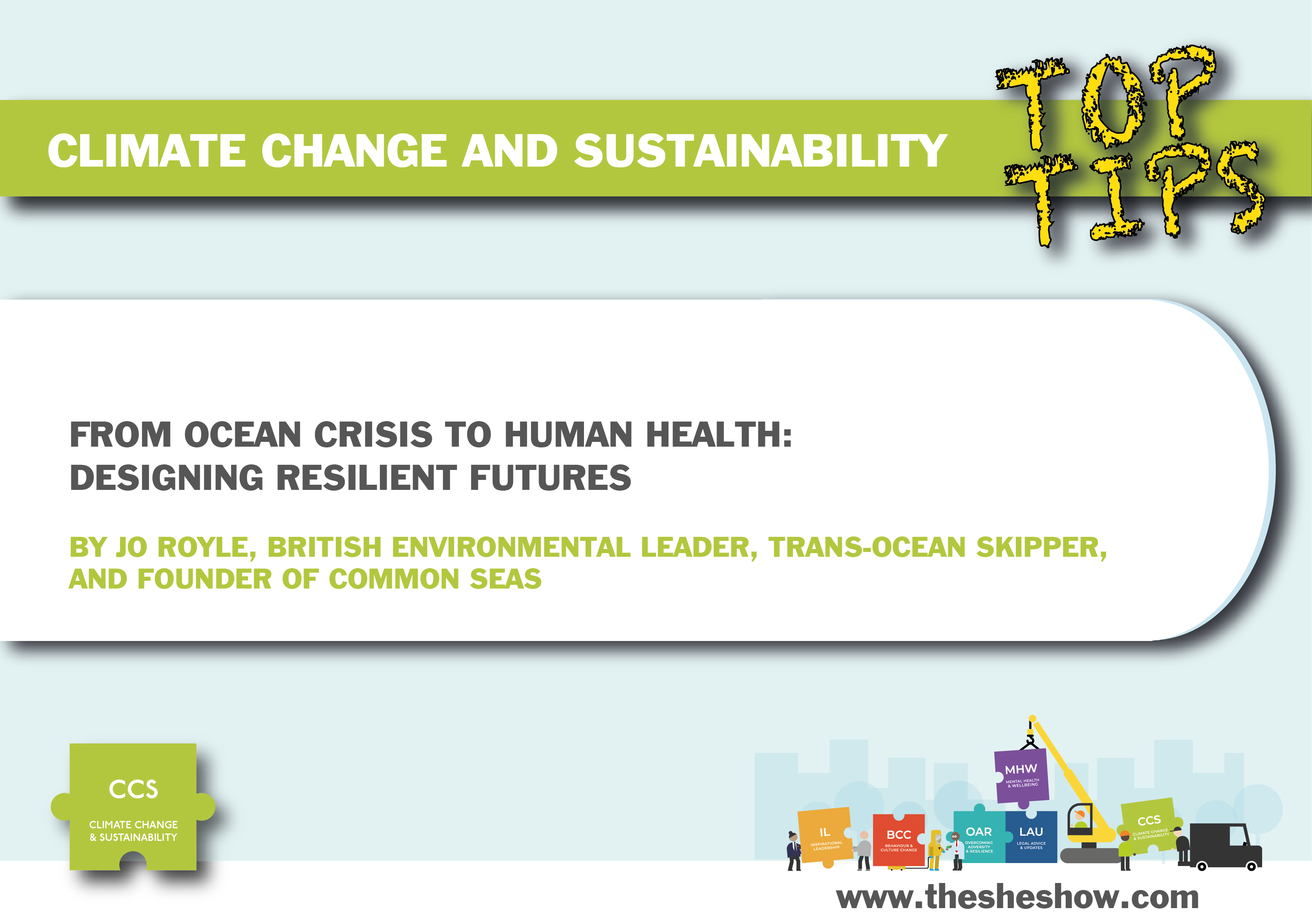 Jo Royle is a British environmental leader, trans-ocean skipper, and founder of Common Seas, an organisation tackling plastic pollution at its source. She co-designed and skippered Plastiki, a 60-foot catamaran built from reclaimed plastic bottles, across the Pacific Ocean to raise global awareness of plastic pollution. Over her career, Jo has worked with 22 governments to reduce plastic waste, led pioneering research that uncovered the first evidence of microplastics in human blood, and co-led the Global Ocean Legacy campaign, securing protection for over 4.4 million km² of ocean – including Pitcairn, one of the world’s most remote marine reserves. She also helped launch the international Plastic Pact with King Charles III (then Prince of Wales) International Sustainability Unit, now spanning 19 countries and more than 900 member organisations. Her work has been featured by the BBC, National Geographic, Vogue, and TEDx, and she is the recipient of the Geddes Environmental Medal. Today, Jo focuses on ventures supporting resilient coastal communities and advancing the rights of nature.